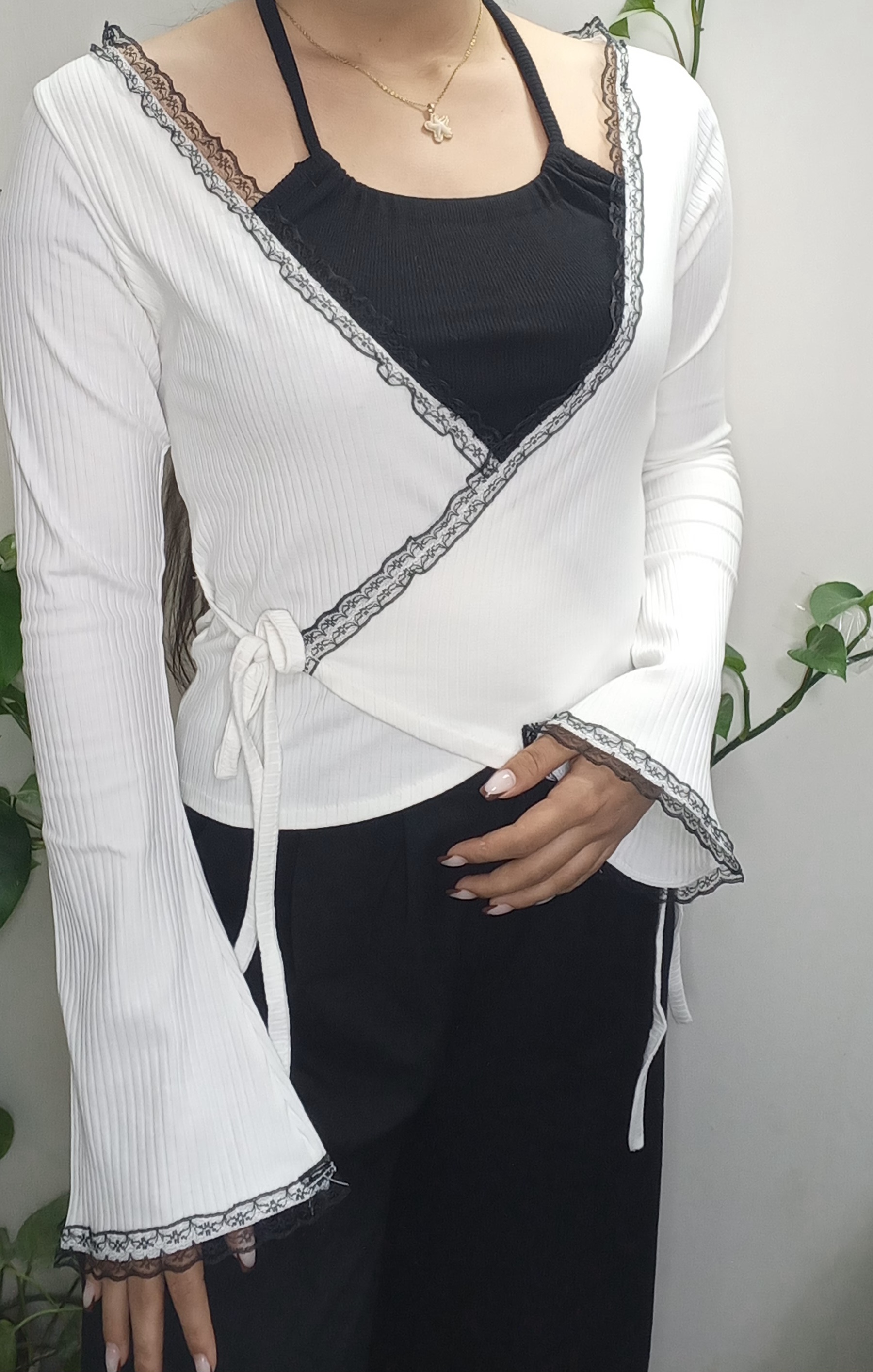 بلوز آستین بلند چپ و راستی قد:۵۰س عرض:۴۵س قدآستین:۶۰س فری سایزتا۴۲ (رنگبندی تک رنگ) جنس:کرکره ای