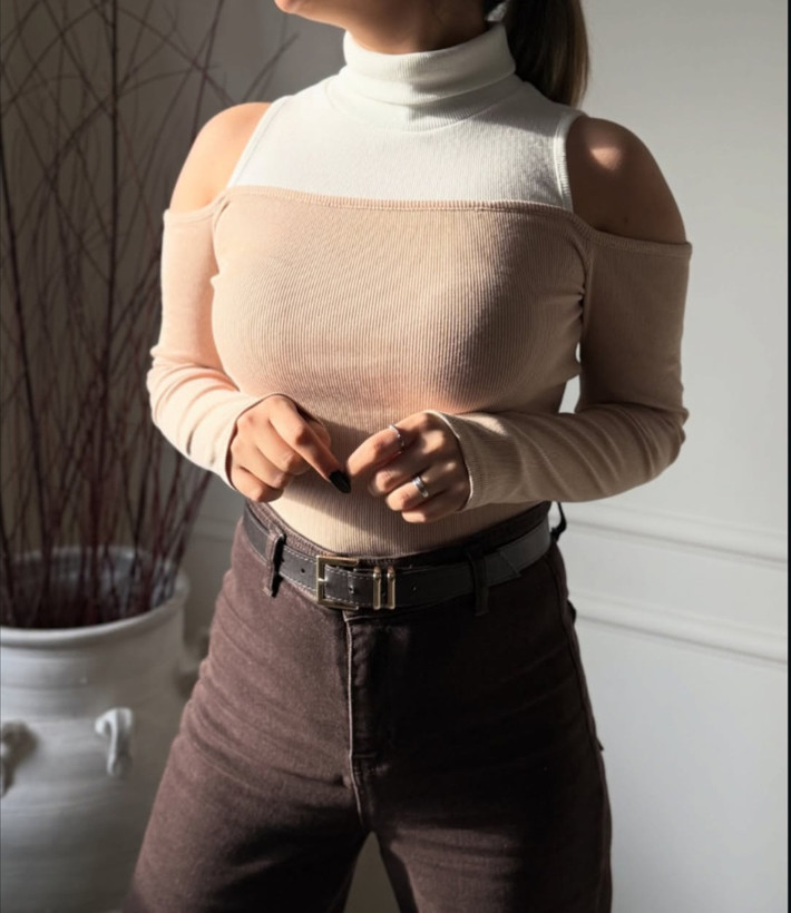 کراپ زنانه مدل یقه اسکی دو تیکه